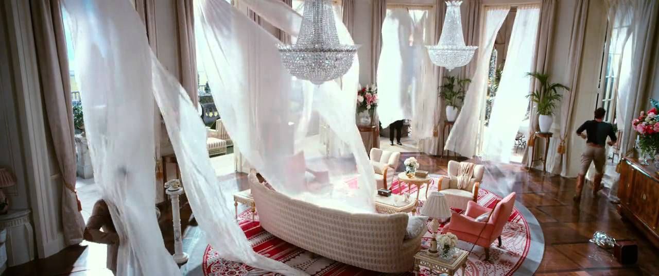 La influencia del diseño art déco puede verse en la película en varios sets, en el gran salón de baile de Gatsby, en el diseño de las alfombras en la sala y comedor de los Buchanan y en la llamativa decoración del apartamento de Myrtle.